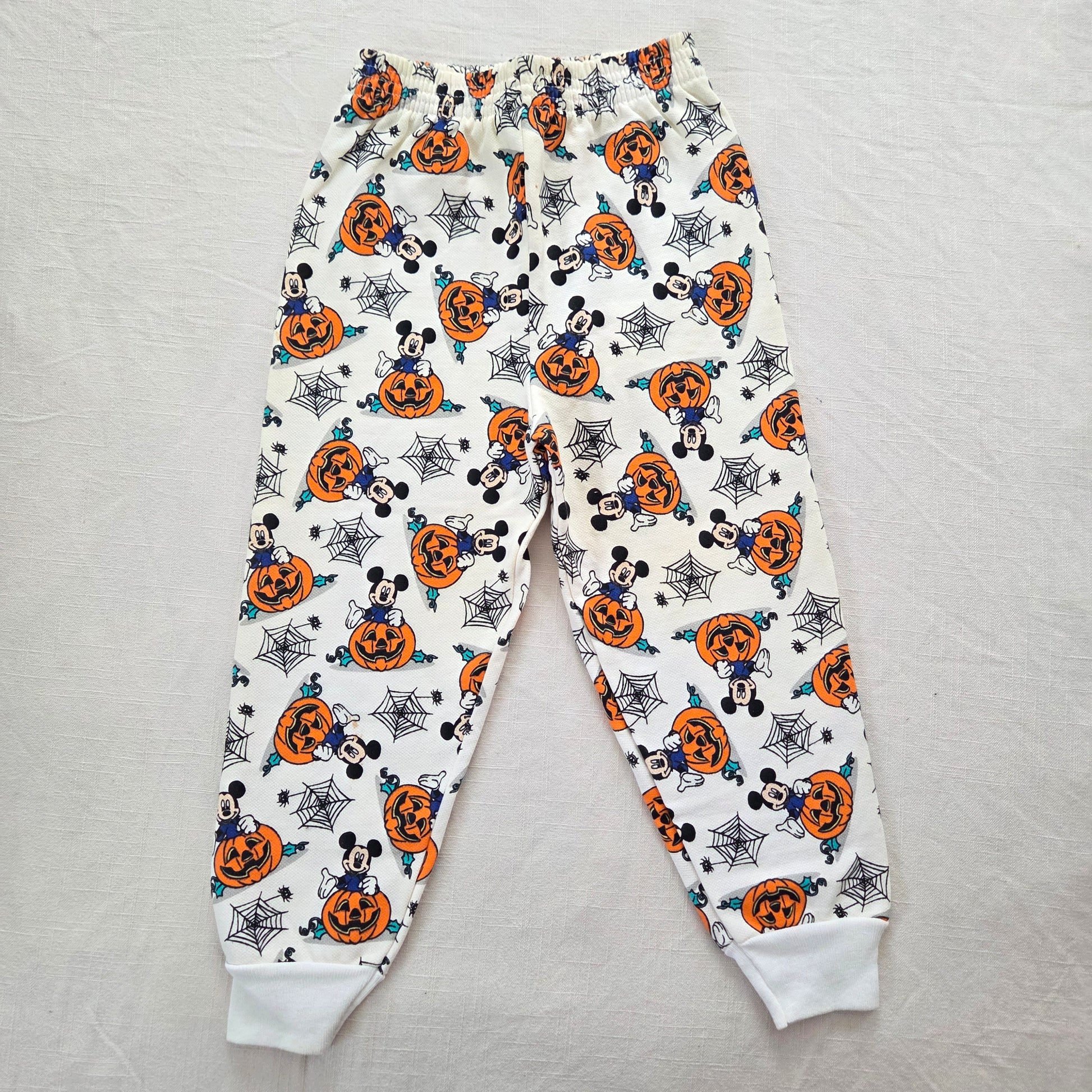 90s era! Mickey Mouse with Jack-o-Lanterns and spider webs pattern! Jogger pants with stretchy elastic waist!